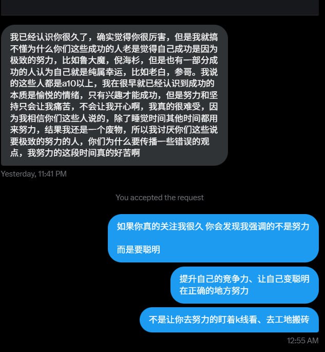 那是因为我自己没有更早的涉足Solana链上交易/没有任何Rust编程基础/是中国人所以不方便做交易所项目》》》这一切都是我自己的取舍,我的懒惰,我的天赋,我的选择 一系列因素叠加起来造成今天的结果》》》Alon凭借个人能力+努力抓住了时代给予的机会,恭喜这样一名成功者》》》我无法改变今天,但是我可以为下次机会做准备